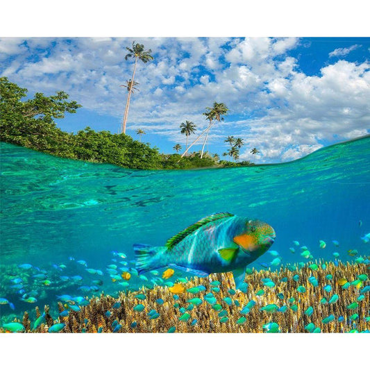 Blue chromis and coral at palm tree Bukai Beach-Palawan-Philippines Gold Ornate Wood Framed Art Print with Double Matting by Fitzharris, Tim