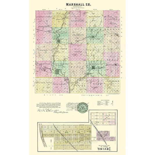 Marshall Kansas - Everts 1887 Gold Ornate Wood Framed Art Print with Double Matting by Everts