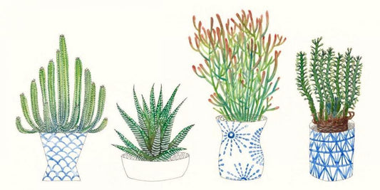 Cactus Arrangement II White Modern Wood Framed Art Print with Double Matting by Wang, Melissa