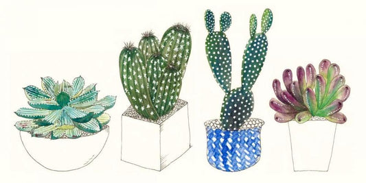 Cactus Arrangement I White Modern Wood Framed Art Print with Double Matting by Wang, Melissa