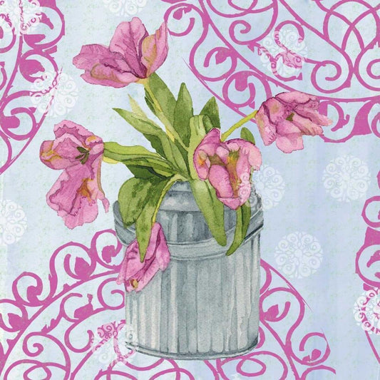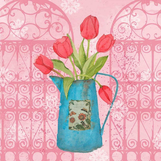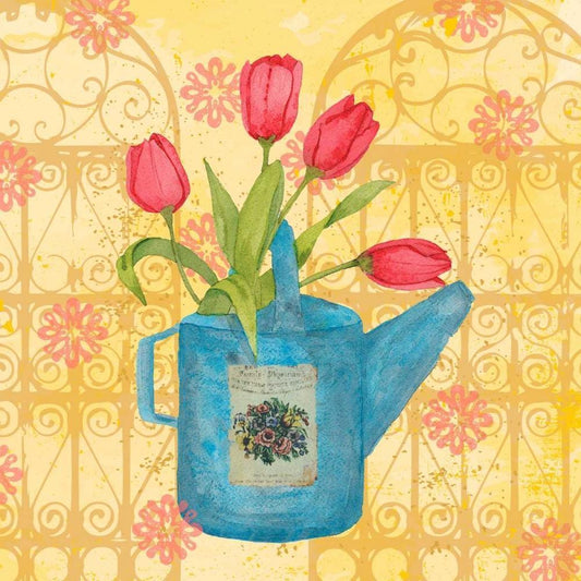 Vintage Tulip Can II White Modern Wood Framed Art Print with Double Matting by Mark, Leslie