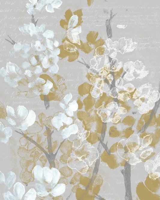 Mustard on Grey Blooms I White Modern Wood Framed Art Print with Double Matting by Goldberger, Jennifer