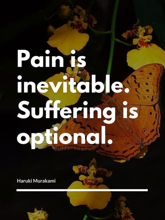 Haruki Murakami Quote: Pain is Inevitable White Modern Wood Framed Art Print with Double Matting by ArtsyQuotes