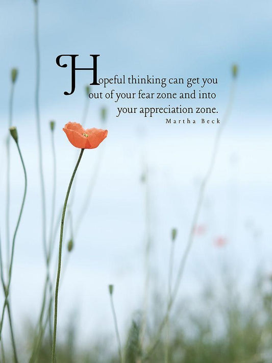 Martha Beck Quote: Hopeful Thinking White Modern Wood Framed Art Print with Double Matting by ArtsyQuotes