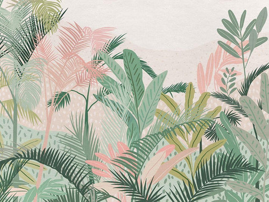 Pink Palms White Modern Wood Framed Art Print with Double Matting by Urban Road