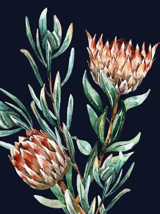 Dark Proteas I Poster White Modern Wood Framed Art Print with Double Matting by Urban Road