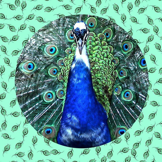 Round Peacock 2 White Modern Wood Framed Art Print with Double Matting by Phillip, Jamie