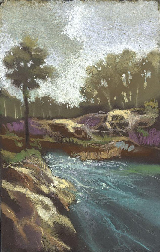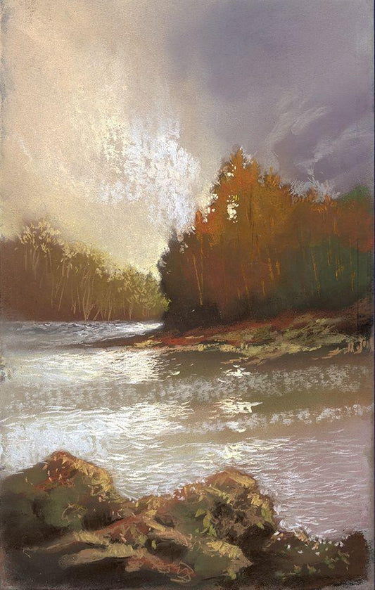 Down The River II White Modern Wood Framed Art Print with Double Matting by Larson