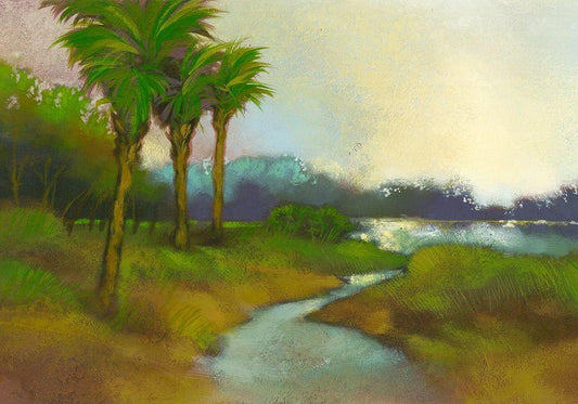 Down The River I White Modern Wood Framed Art Print with Double Matting by Larson