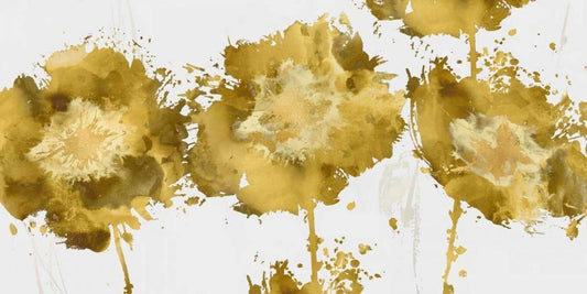 Golden Fower Burst Trio White Modern Wood Framed Art Print with Double Matting by Austin, Vanessa