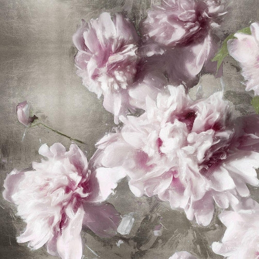 Peonies on Silver II White Modern Wood Framed Art Print with Double Matting by Sullivan, Shawna