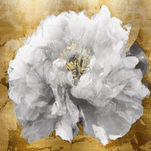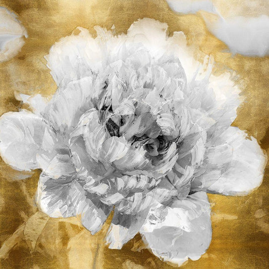 Peonies on Gray and Gold II White Modern Wood Framed Art Print with Double Matting by Sullivan, Shawna
