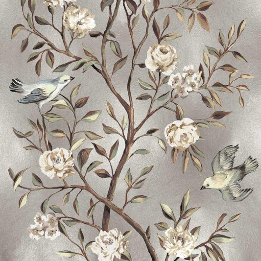 Chinoiserie in Silver I White Modern Wood Framed Art Print with Double Matting by Campbell, Renee