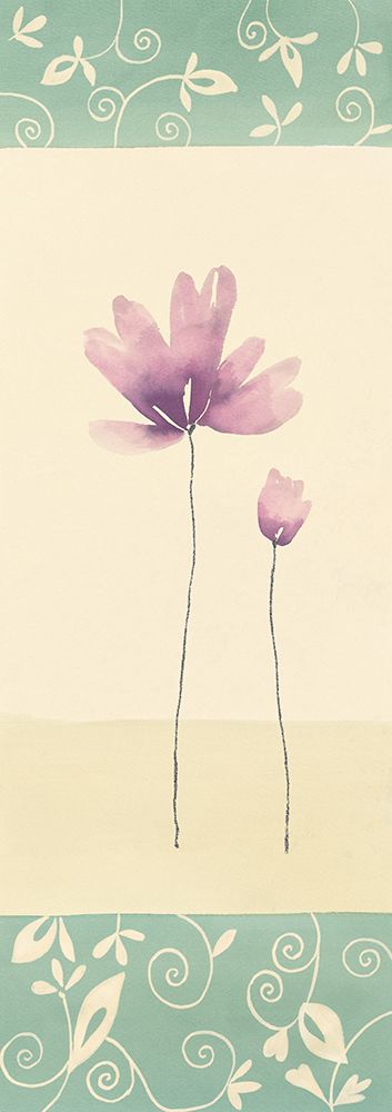 Panneau Printemps I White Modern Wood Framed Art Print with Double Matting by Besson, Nathalie