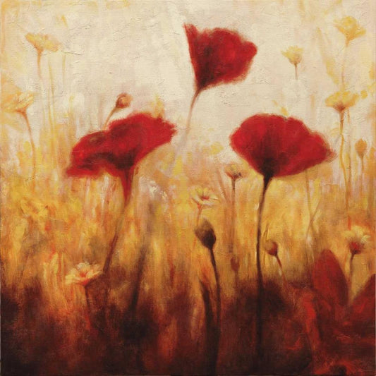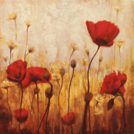 Poppies and Daisies I White Modern Wood Framed Art Print with Double Matting by Carter, Natalie