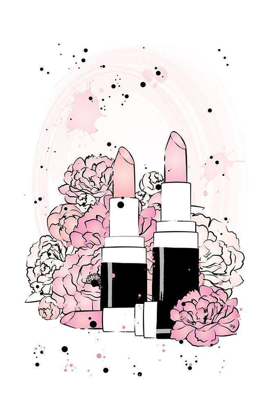Peony Lipsticks White Modern Wood Framed Art Print with Double Matting by Pavlova, Martina