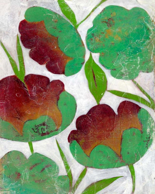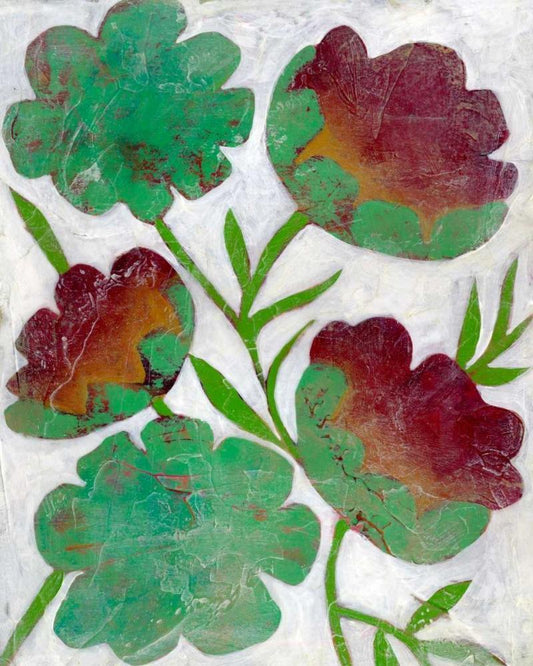 Verdigris Blooms I White Modern Wood Framed Art Print with Double Matting by Zarris, Chariklia
