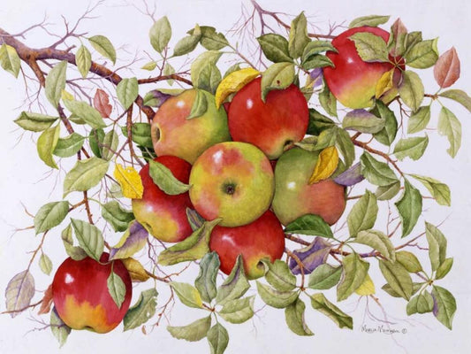 Apples White Modern Wood Framed Art Print with Double Matting by Matcham, Marcia