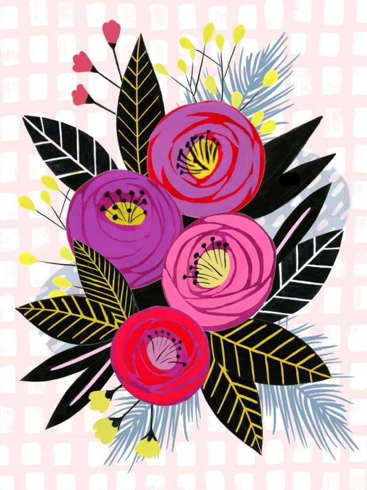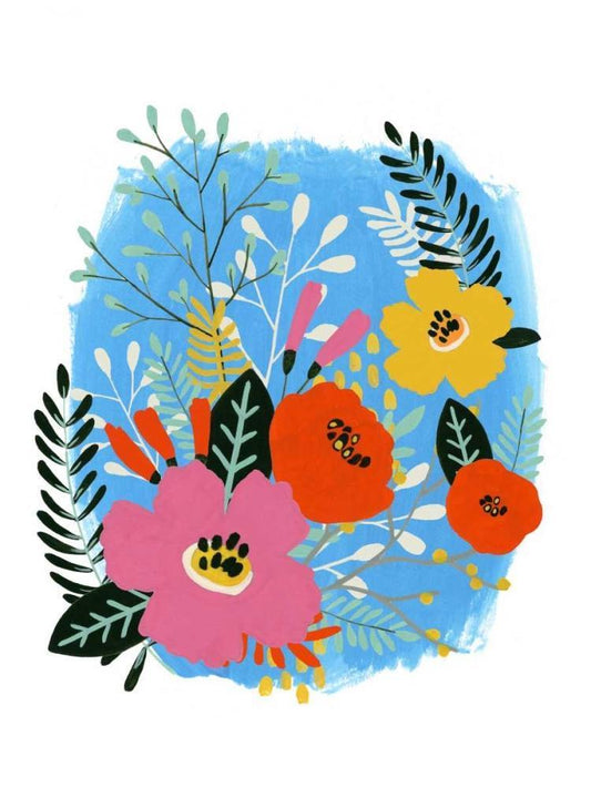 Retro Bouquet II White Modern Wood Framed Art Print with Double Matting by Popp, Grace