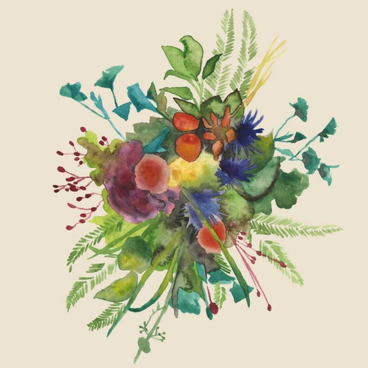 Watercolor Floral Spray II White Modern Wood Framed Art Print with Double Matting by McCavitt, Naomi