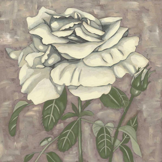 Silver Rose I White Modern Wood Framed Art Print with Double Matting by Zarris, Chariklia