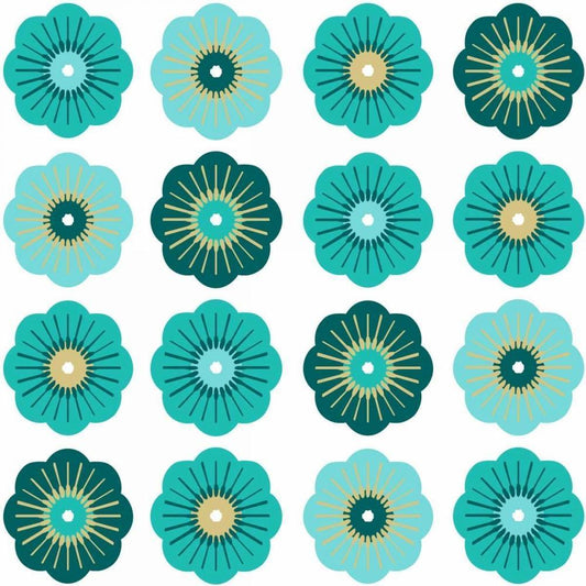 Spa Blue and Gold I White Modern Wood Framed Art Print with Double Matting by OToole, Tim