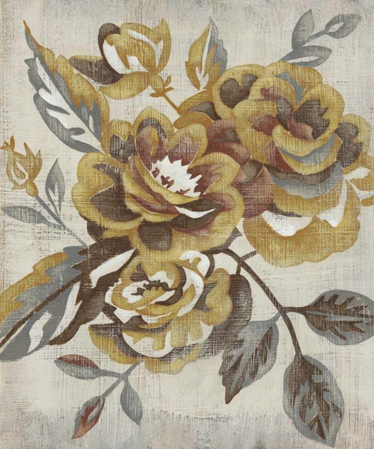 Flowers on Ochre I White Modern Wood Framed Art Print with Double Matting by Goldberger, Jennifer