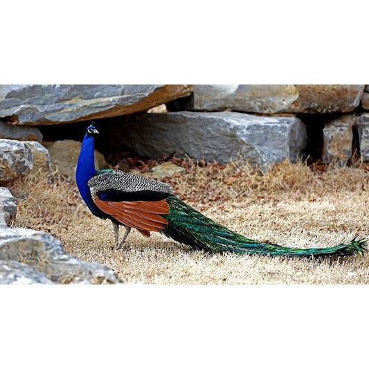 Posing Peacock III Gold Ornate Wood Framed Art Print with Double Matting by Putman, Tammy