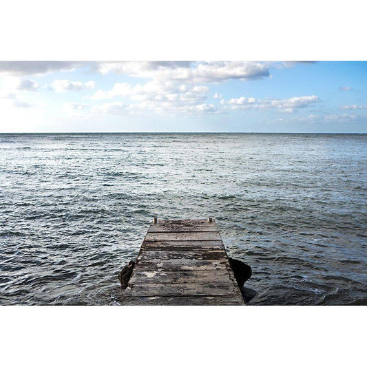 Pier Over The Rocky Sea Gold Ornate Wood Framed Art Print with Double Matting by Millet, Karyn