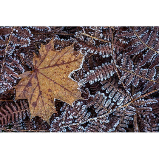 Maple Leaf and Frost I Gold Ornate Wood Framed Art Print with Double Matting by Mahan, Kathy