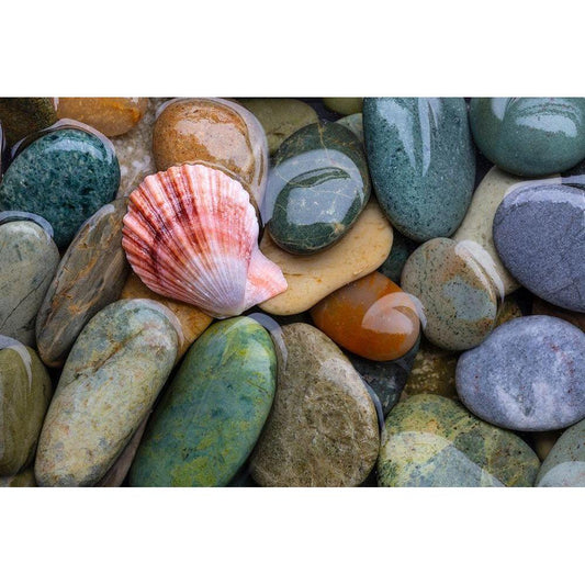 Scallop Shell and Beach Rock Gold Ornate Wood Framed Art Print with Double Matting by Mahan, Kathy