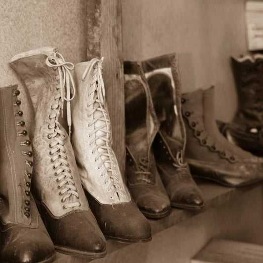 Vintage Boots Gold Ornate Wood Framed Art Print with Double Matting by Mahan, Kathy
