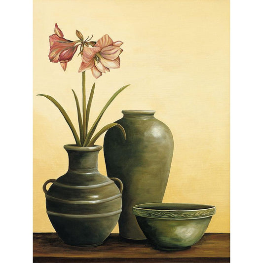 Still Life with Red Flowers Gold Ornate Wood Framed Art Print with Double Matting by Brighton, Grace