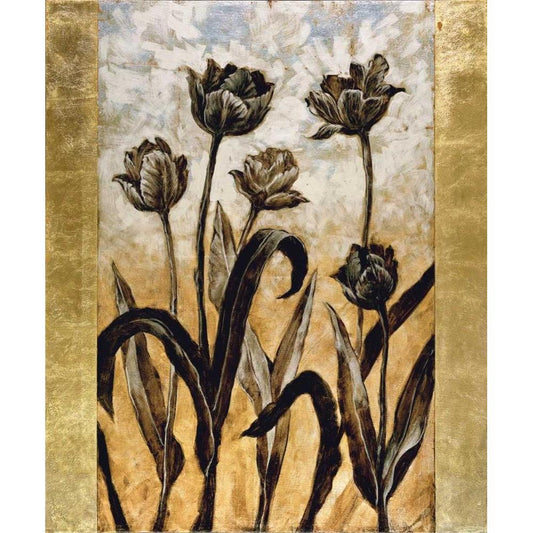 Tulip Silhouette Gold Ornate Wood Framed Art Print with Double Matting by Lange, Erin