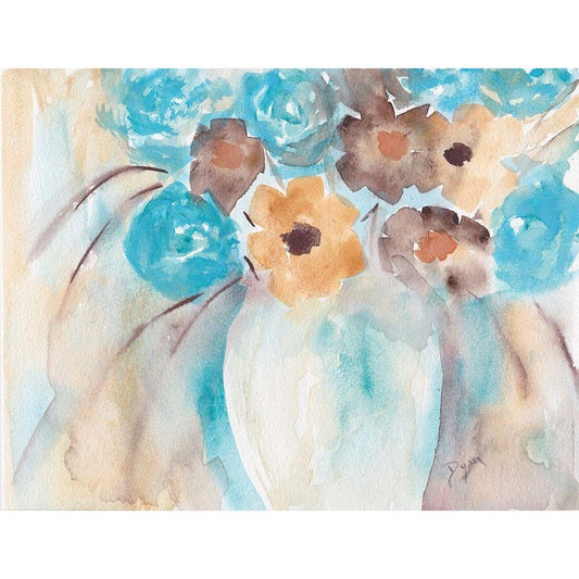 Teal Brown Garden Bouquet Gold Ornate Wood Framed Art Print with Double Matting by Dyer, Beverly