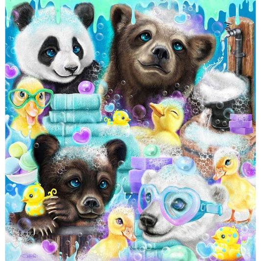 Scrub a Dub Cubs Gold Ornate Wood Framed Art Print with Double Matting by Sheena Pike Art