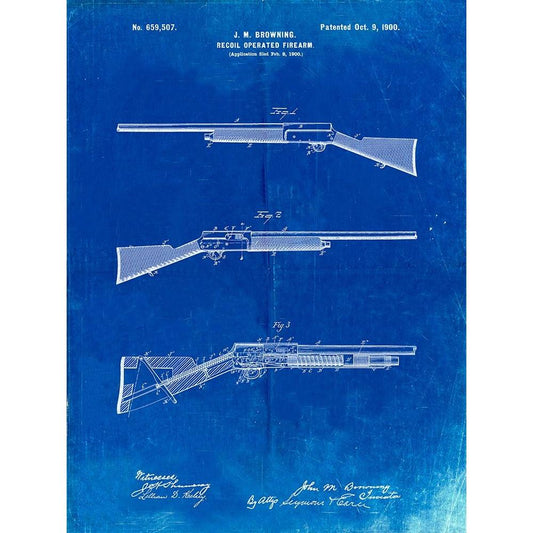 PP754-Faded Blueprint Browning Auto 5 Shotgun 1900 Patent Poster Gold Ornate Wood Framed Art Print with Double Matting by Borders, Cole