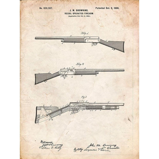 PP754-Vintage Parchment Browning Auto 5 Shotgun 1900 Patent Poster Gold Ornate Wood Framed Art Print with Double Matting by Borders, Cole