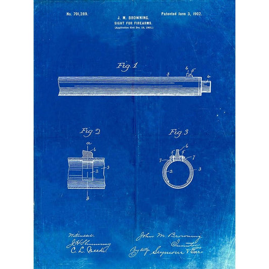 PP756-Faded Blueprint Browning Sight for Firearms Patent Poster Gold Ornate Wood Framed Art Print with Double Matting by Borders, Cole