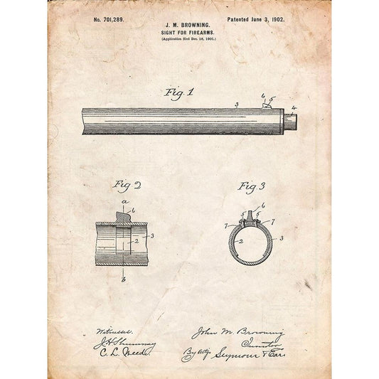 PP756-Vintage Parchment Browning Sight for Firearms Patent Poster Gold Ornate Wood Framed Art Print with Double Matting by Borders, Cole
