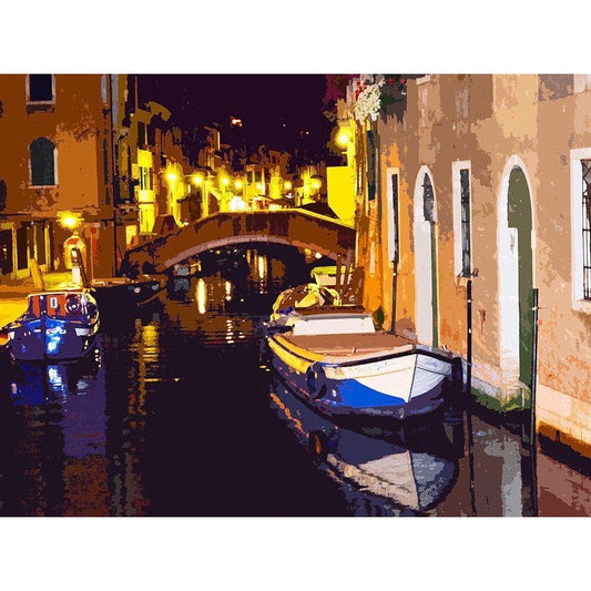 Gondola Night Gold Ornate Wood Framed Art Print with Double Matting by Ghanooni, Sarah