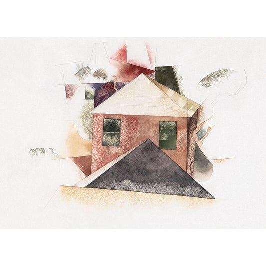 Houses with Red Gold Ornate Wood Framed Art Print with Double Matting by Demuth, Charles