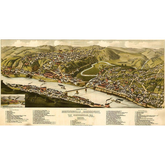 Bridgeport-Pennsylvania 1883 AKA Brownsville Gold Ornate Wood Framed Art Print with Double Matting by Vintage Places