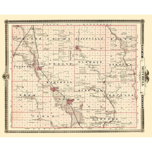Mitchell Iowa Landowner - Andreas 1874 Gold Ornate Wood Framed Art Print with Double Matting by Andreas