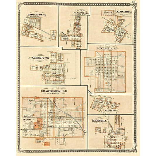 Brownsburg, Plainfield, Jamestown Indiana Gold Ornate Wood Framed Art Print with Double Matting by Baskin