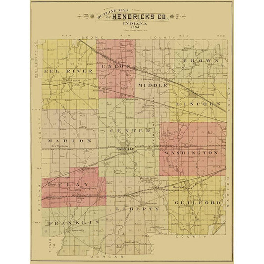 Hendricks Indiana - Ogle 1904 Gold Ornate Wood Framed Art Print with Double Matting by Ogle