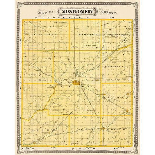 Montgomery Indiana - Andreas 1876 Gold Ornate Wood Framed Art Print with Double Matting by Andreas