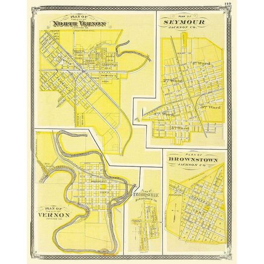 Vernon, Seymour, Brownstone Indiana - Baskin 1876 Gold Ornate Wood Framed Art Print with Double Matting by Baskin