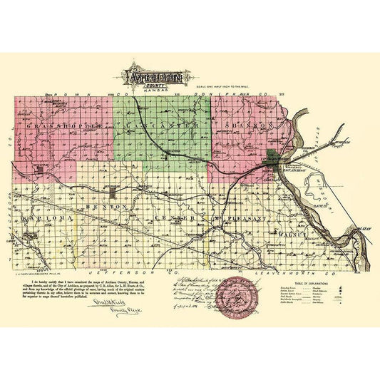 Atchison Kansas - Everts 1887 Gold Ornate Wood Framed Art Print with Double Matting by Everts