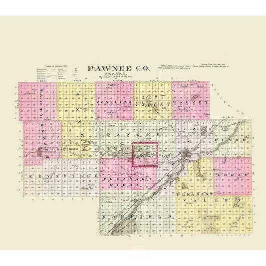 Pawnee Kansas - Everts 1887 Gold Ornate Wood Framed Art Print with Double Matting by Everts